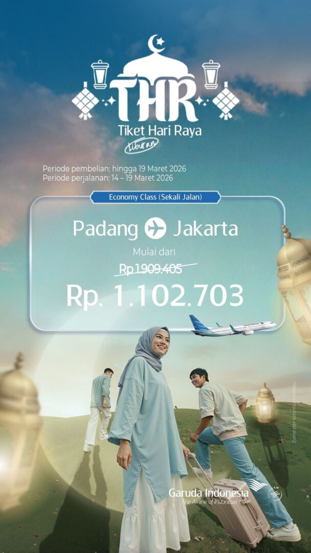 Padang,hantaran.co–Menyambut momentum lebaran Idulfitri 1447 Hijriah, maskapai penerbangan Garuda Indonesia menghadirkan program khusus Tiket Hari Raya (THR) selama periode Ramadan.